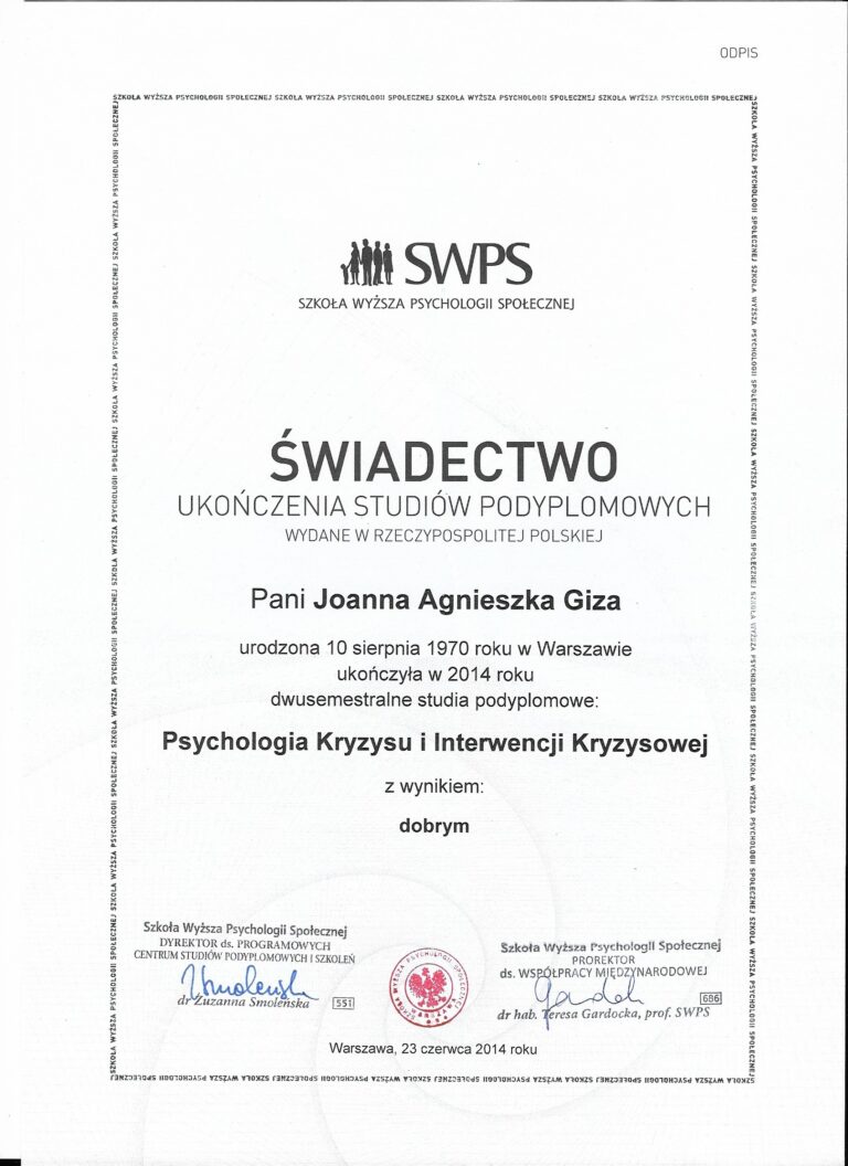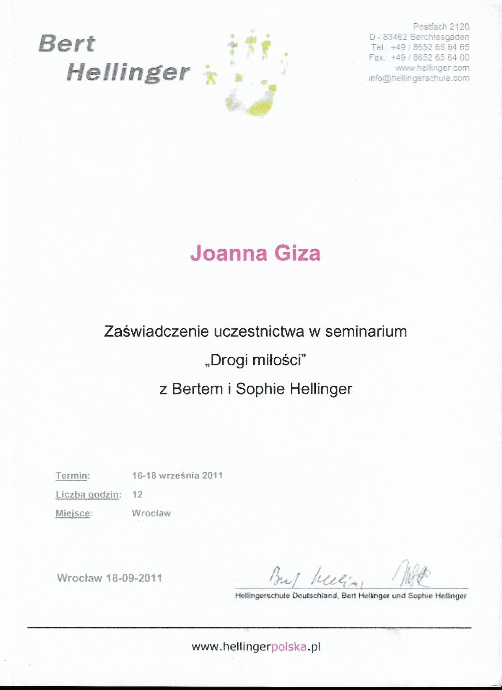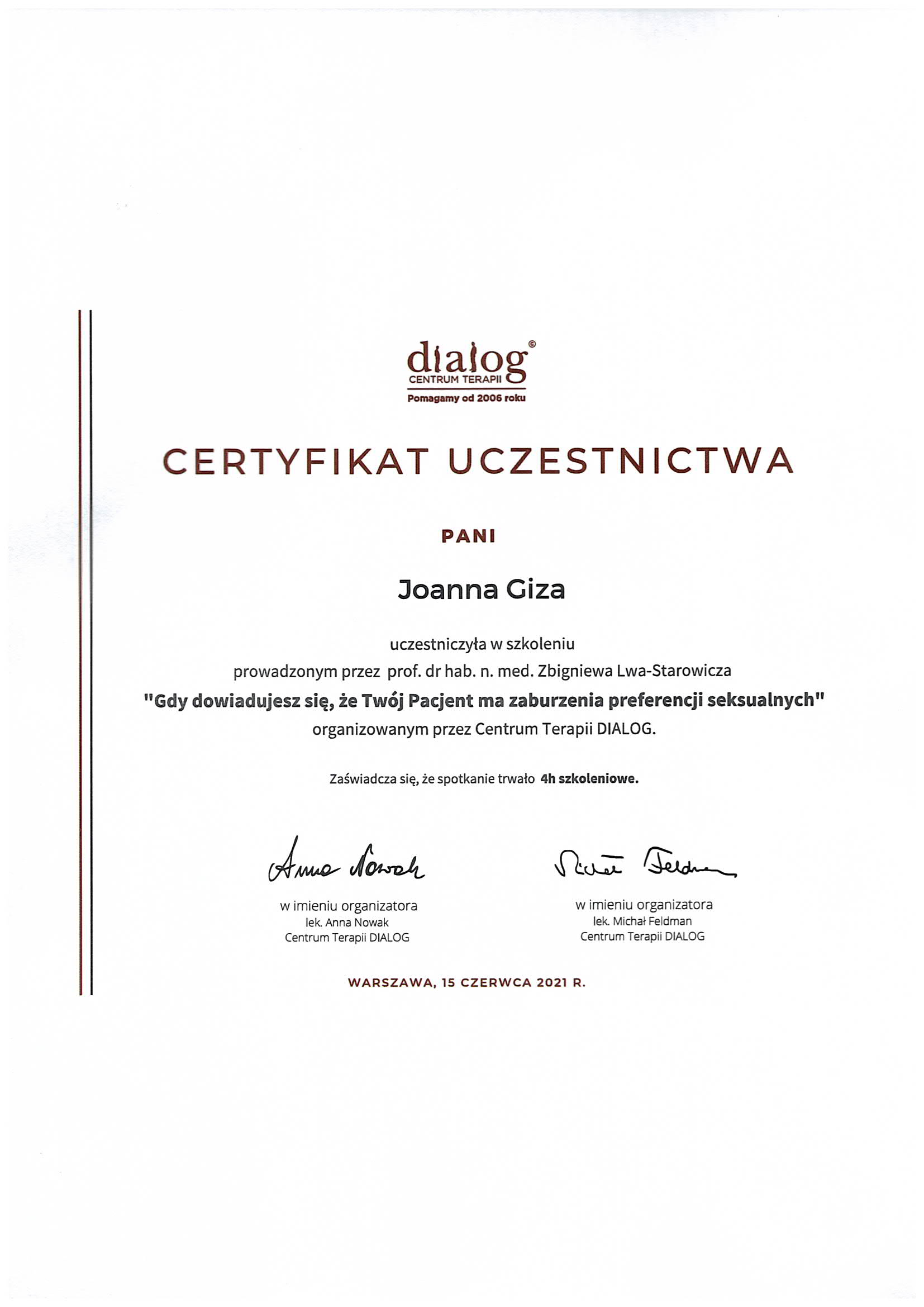 Certyfikat udziału w konferencji Integracja w psychoterapii