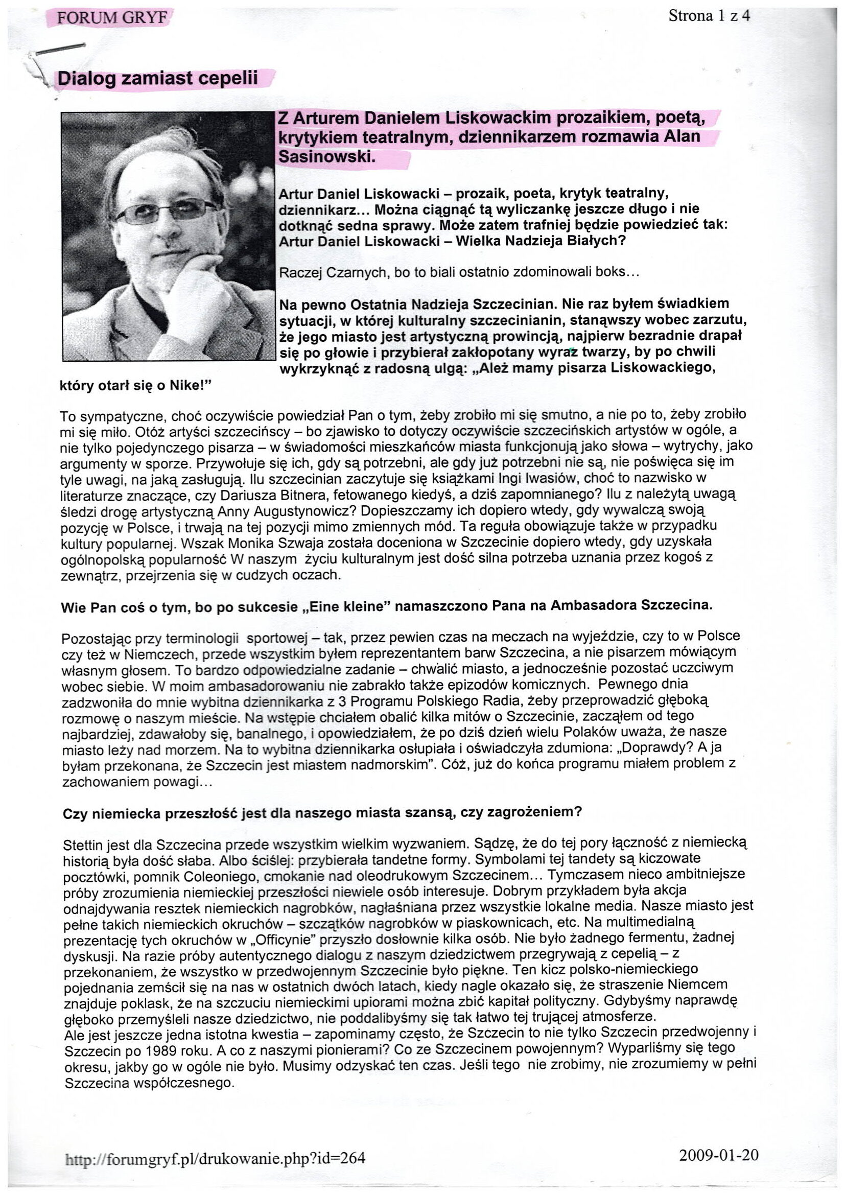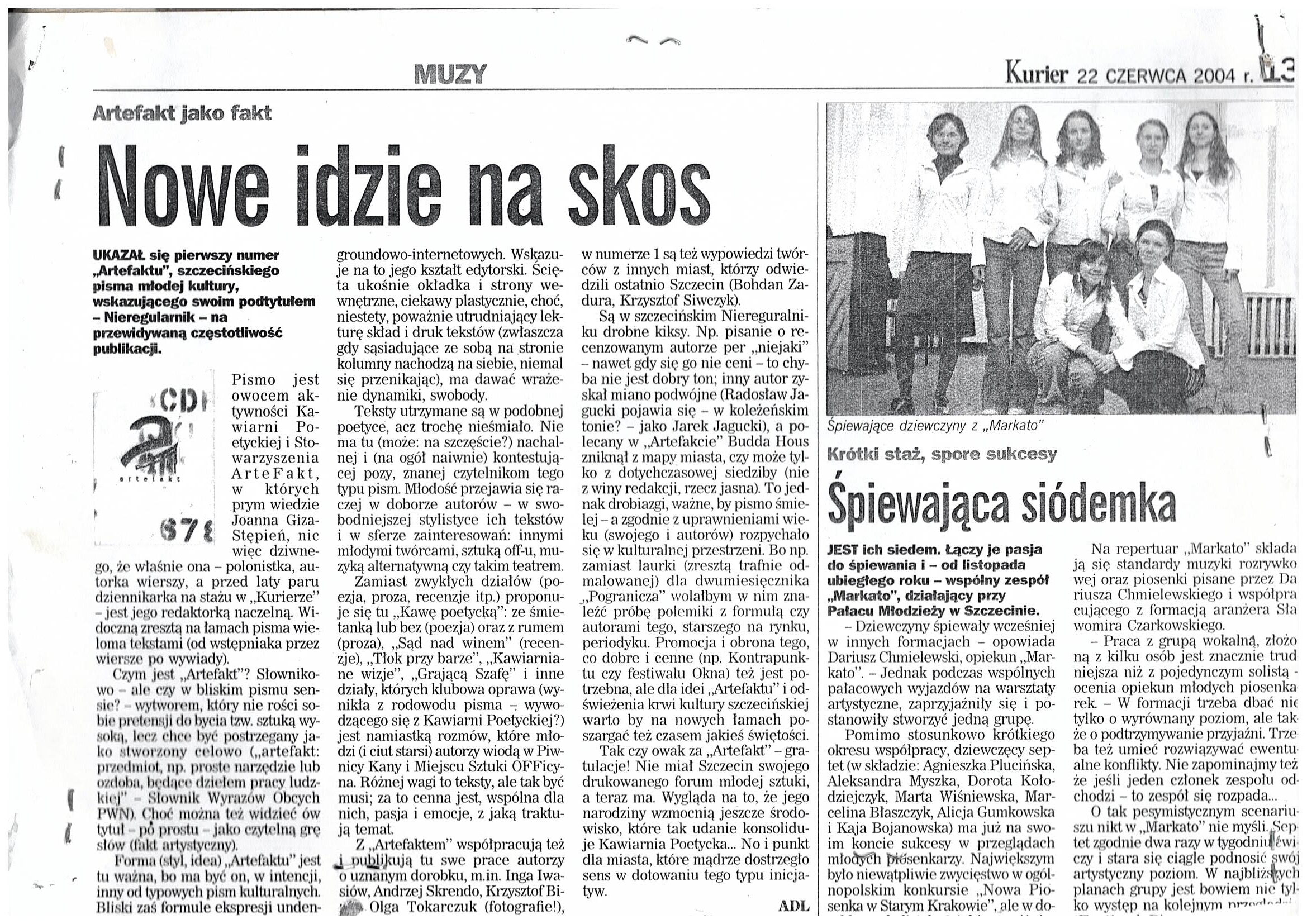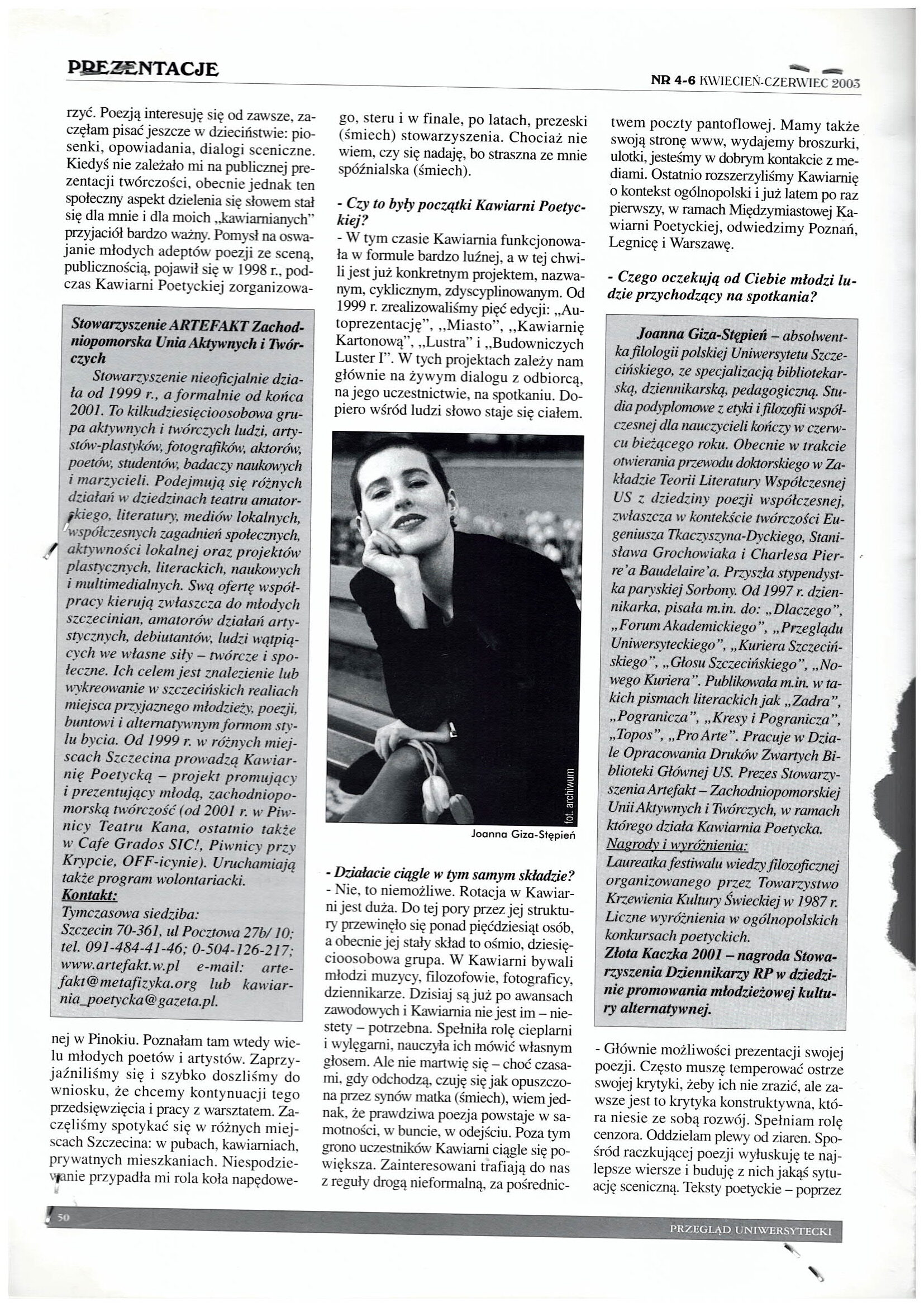 Pismo, które wydałam w Szczecinie jako szefowa ArteFaktu. Szatę graficzną zawdzięczało utalentowanemu grafikowi, Patrykowi Słowińskiemu - raz jeszcze: dziękuję!